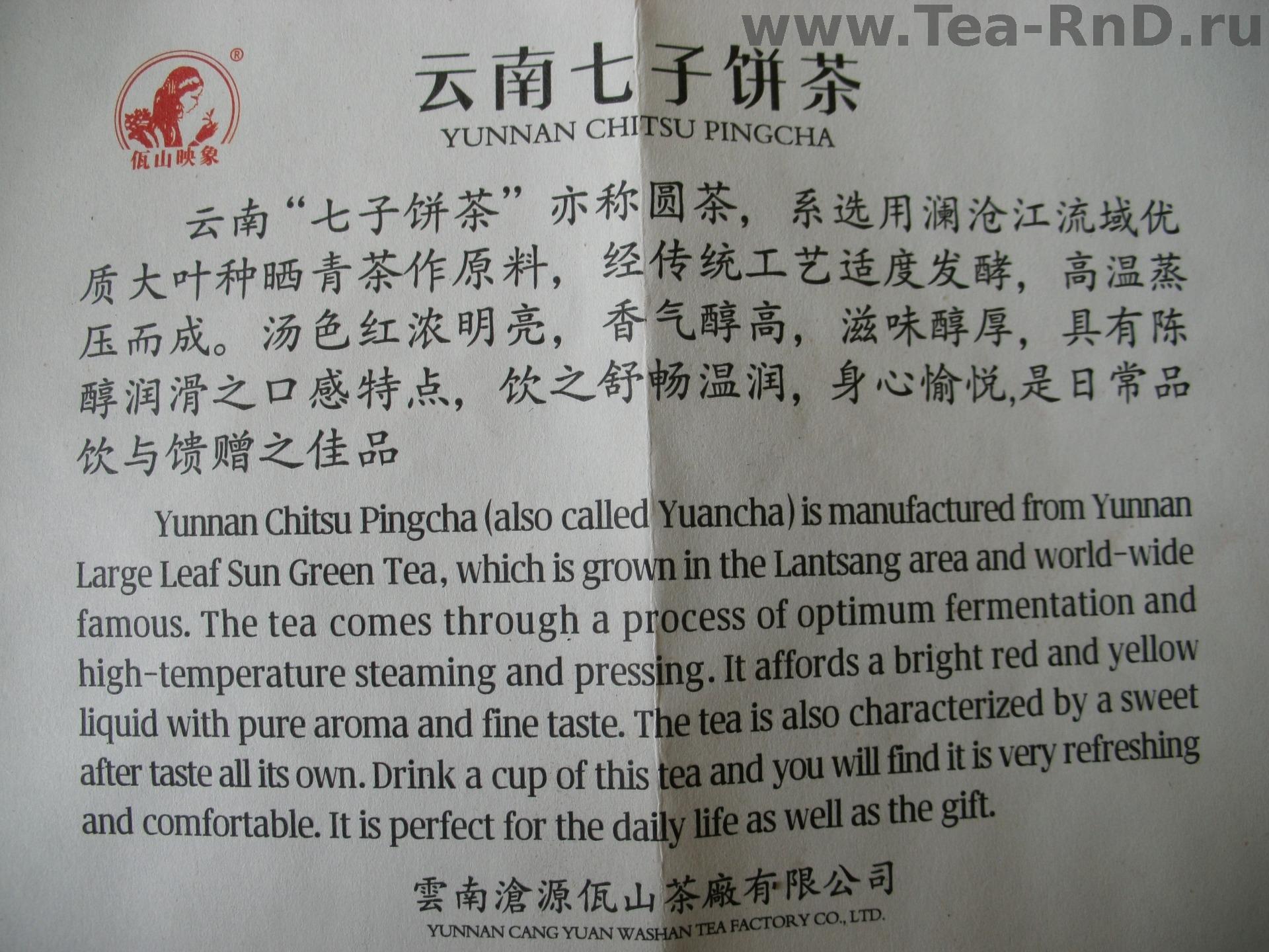 Шу Пуэр Вашань Инсян блин 100 гр. 2025 год 737 руб/1 шт.